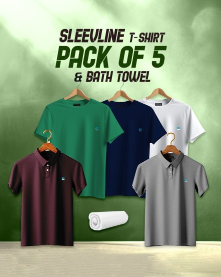 Sleevline T-Shirts (Pack of 5) and Bath Towel